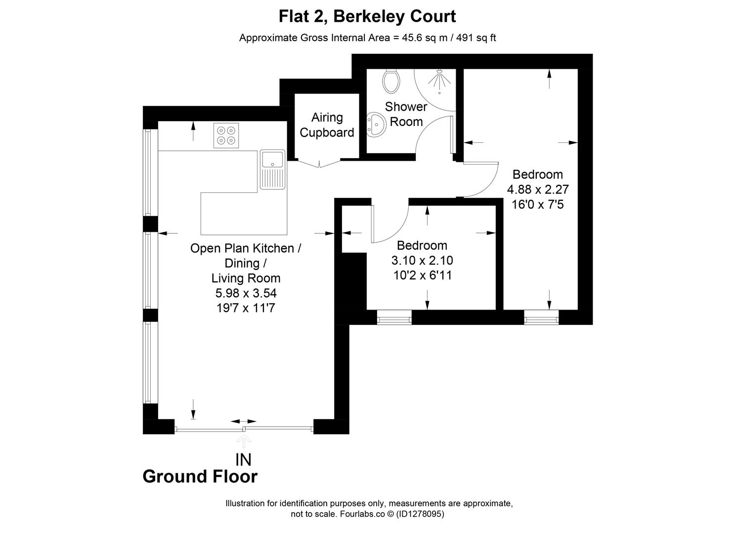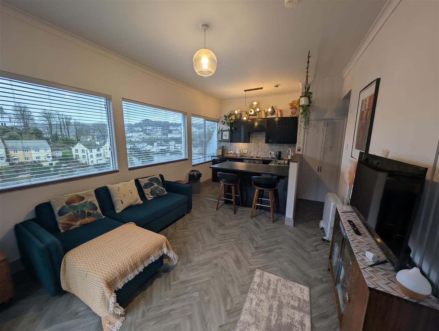A ground floor apartment currently used as a holiday let, about 600 yards from the picturesque harbour and beach in the heart of the Cornish Riviera. About 491 sq ft, 20′ Open Plan Living Room/Kitchen, 2 Bedrooms, Shower/WC.