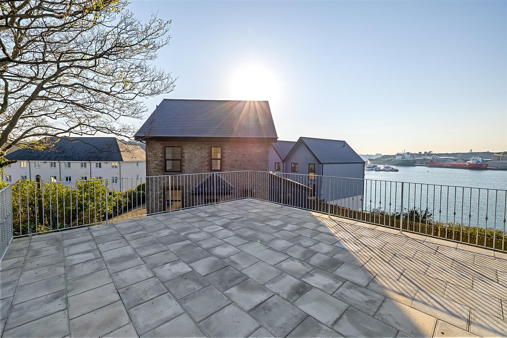Above the garage there is a fantastic paved roof terrace of about 360 sq ft, the roof terrace has wrought iron railings and provides a great vantage point from which to observe the garden and the tidal waters of the mouth of the River Plym.