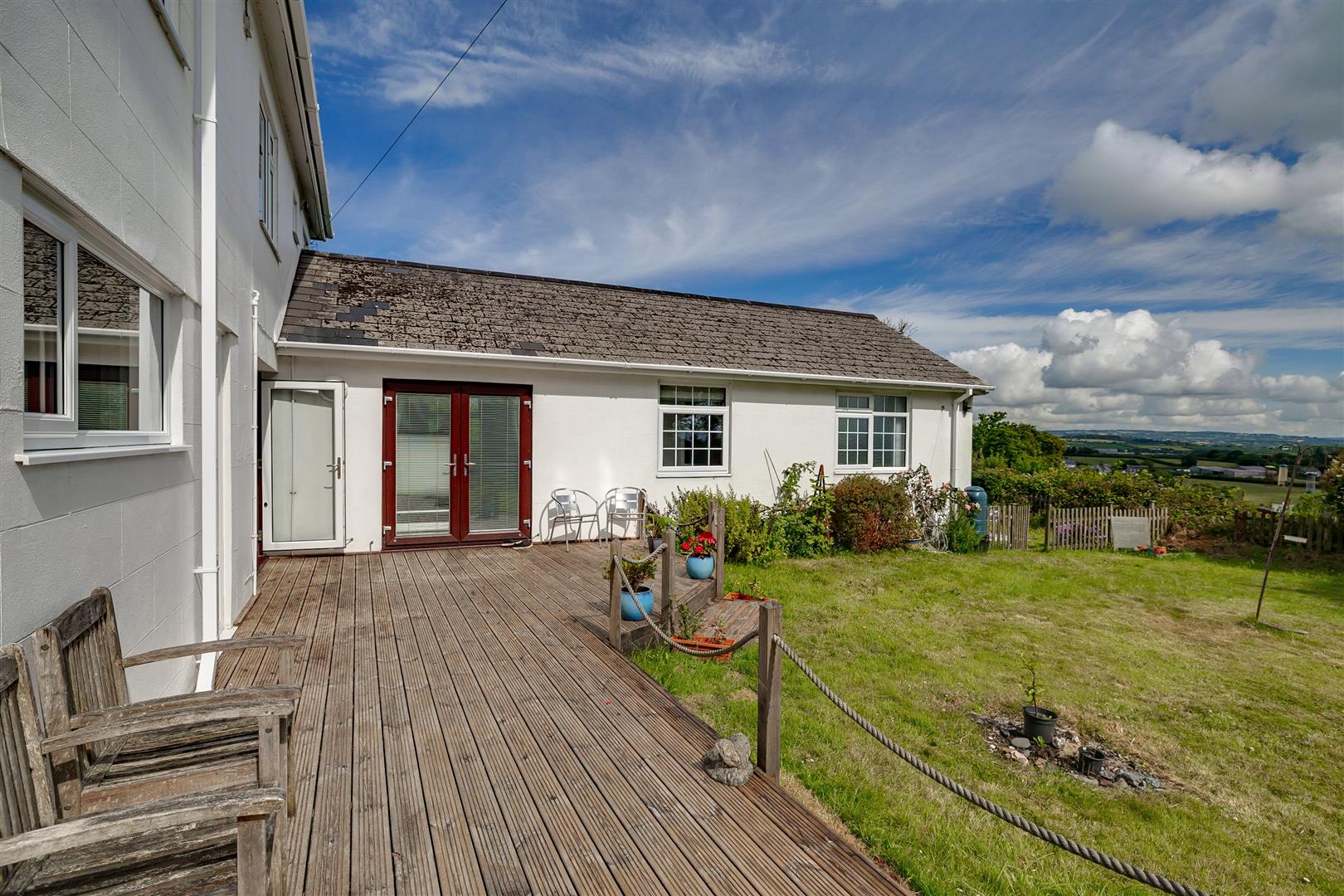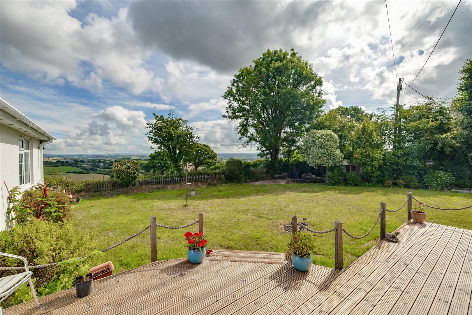 There are decked and paved terraces with fine views across the garden and open countryside. The generous plot extends to about 0.25 acre and is level, predominantly lawn with established hedge boundaries, backing onto open fields and with views over Kit Hill and the foothills of Dartmoor.