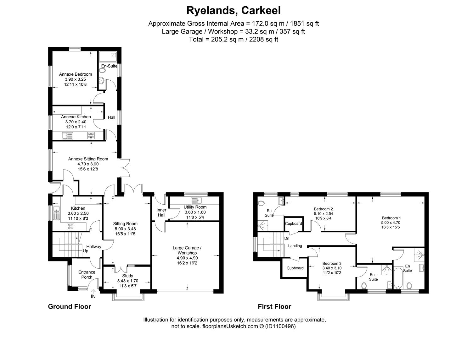 The accommodation extends to about 1851 sq ft and briefly comprises – GROUND FLOOR – Entrance Porch – Reception Hall – 16′ Sitting/Dining Room with French doors to garden – Study with bay window – Kitchen – Utility Room – ANNEXE WING (with level access) – 16′ Sitting Room (or Dining Room for Main House) – Kitchen – Dual Aspect Double Bedroom (Bed 4) with Ensuite Shower/WC – FIRST FLOOR – 3 Double Bedrooms each with contemporary Ensuite Bath/Shower Rooms and Lovely Views.