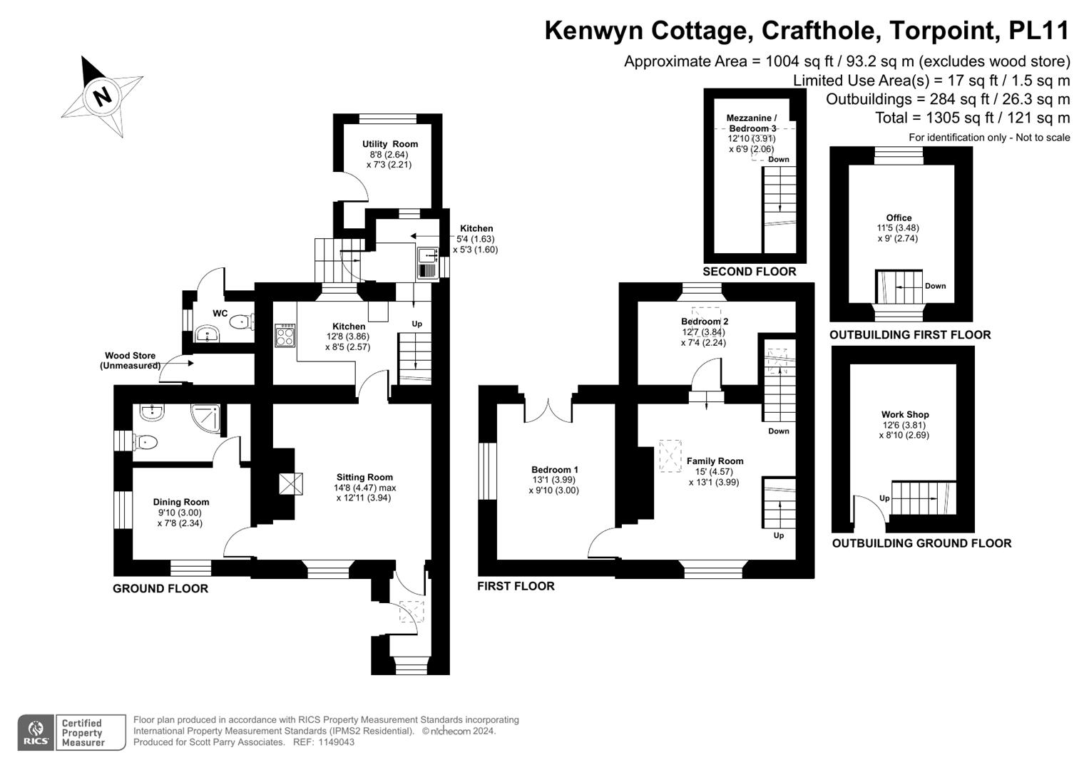 Outbuildings include The Tiddy House (described previously), Cellar with limited headroom, Laundry House/Store, Outside WC, Fuel Store and Shed.