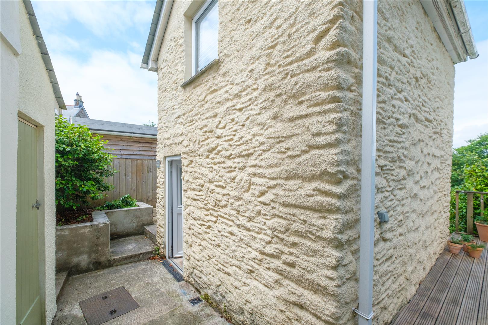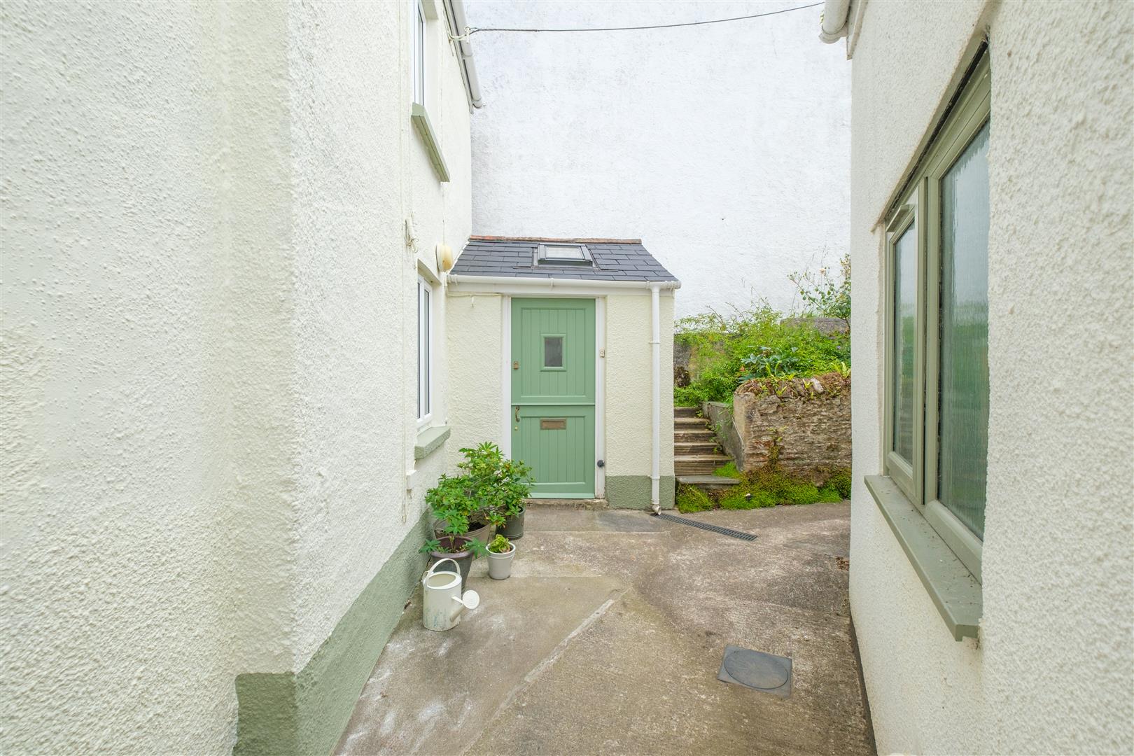 Private path to front entrance door (with right of way over in favour of the neighbour Cosy Cott). Small front garden with established rose bed.
