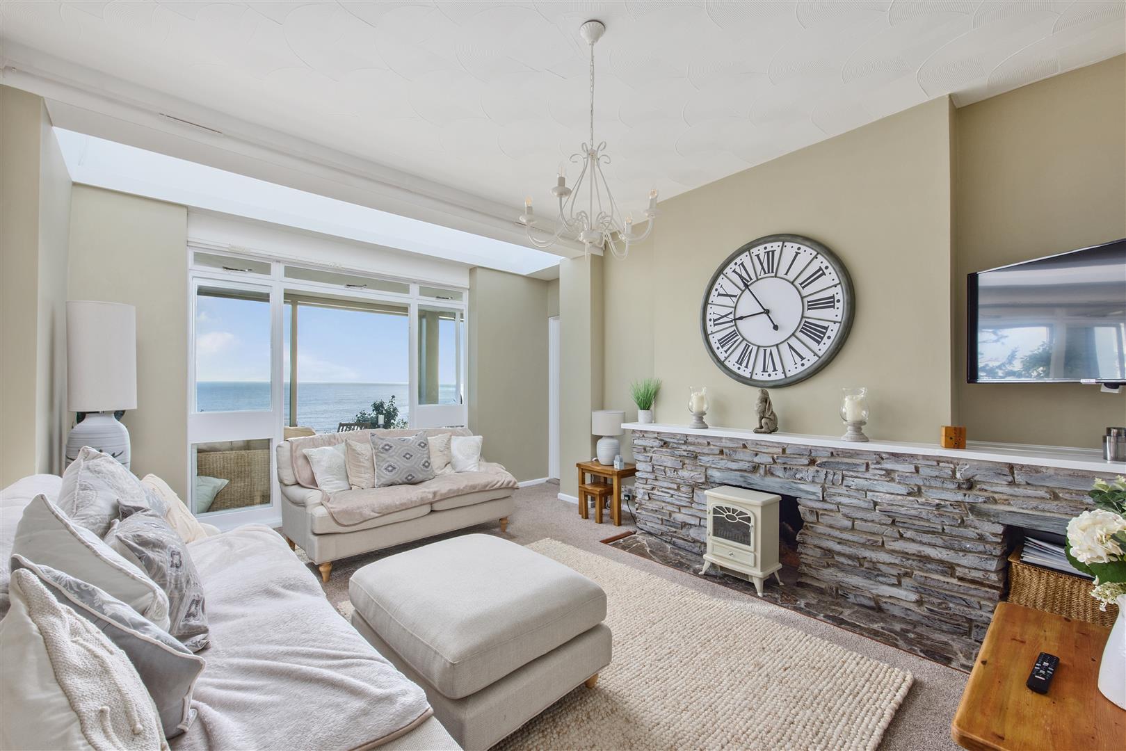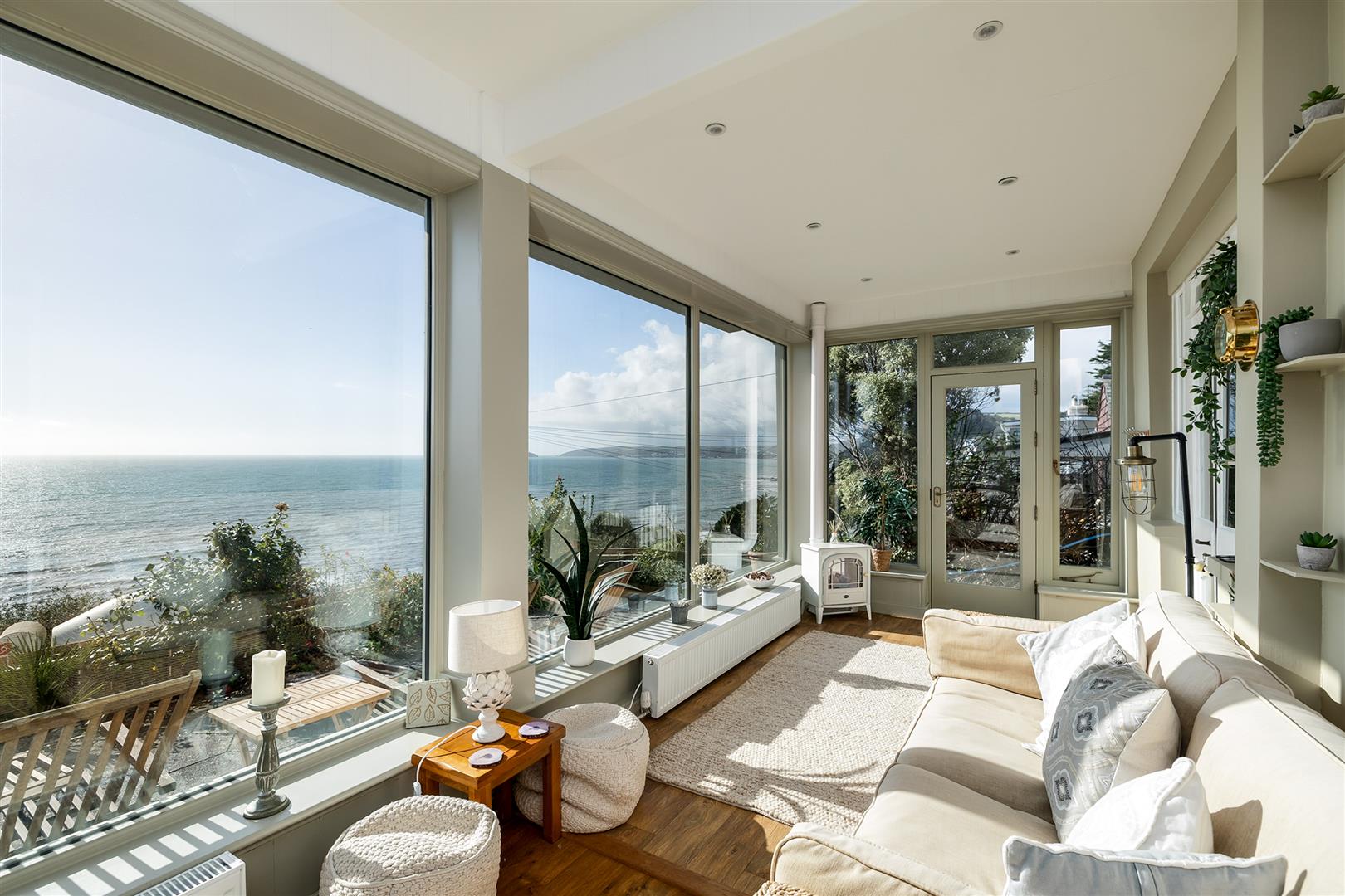 Only 275 yards from Seaton Beach – A fabulous detached seaside residence presented in the contemporary style, in a prized south facing position and commanding stunning 180 degree views over the coastal waters of Whitsand and Looe Bay. Currently a successful holiday let and available furnished. About 1407 sq ft, Sun Room, Sitting Room, Dining Room, Kitchen/Breakfast Room, 3 Double Bedrooms, 2 Bath/Shower Rooms, Parking, Extensive Sun Terrace and Verandah, Gardens, Workshop/Shed, Planning Permission for Remodel.