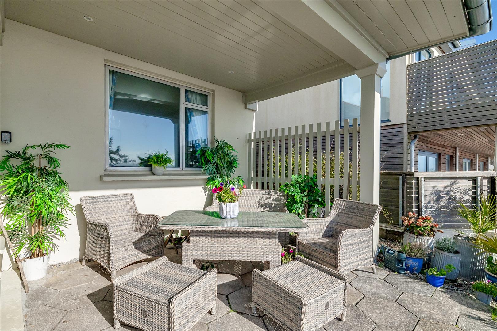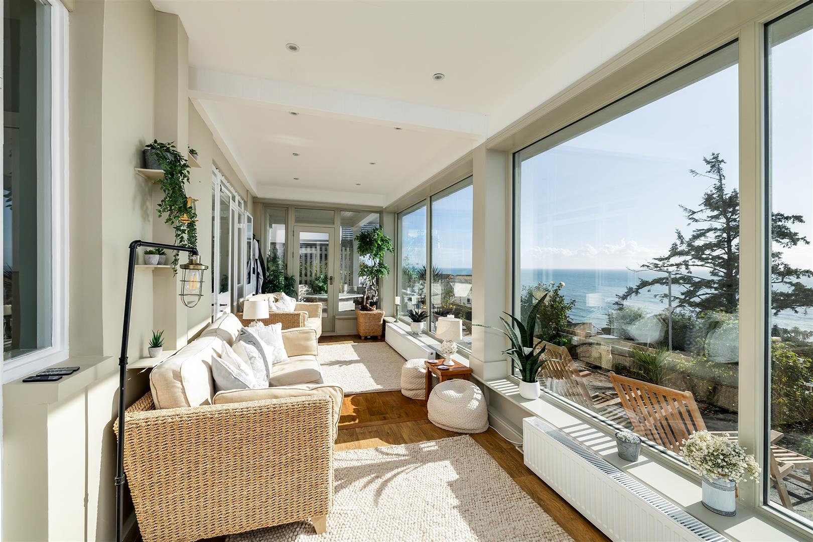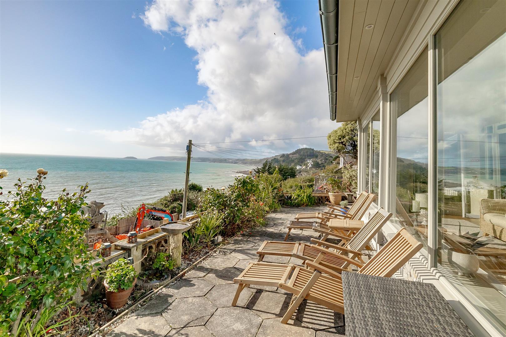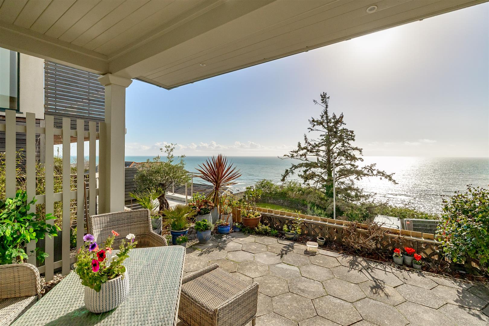 A large sea facing paved terrace has a fine south aspect and provides the perfect spot for entertaining and absorbing the awe inspiring views. The canopied verandah provides shade from the sun and shelter from inclement weather.