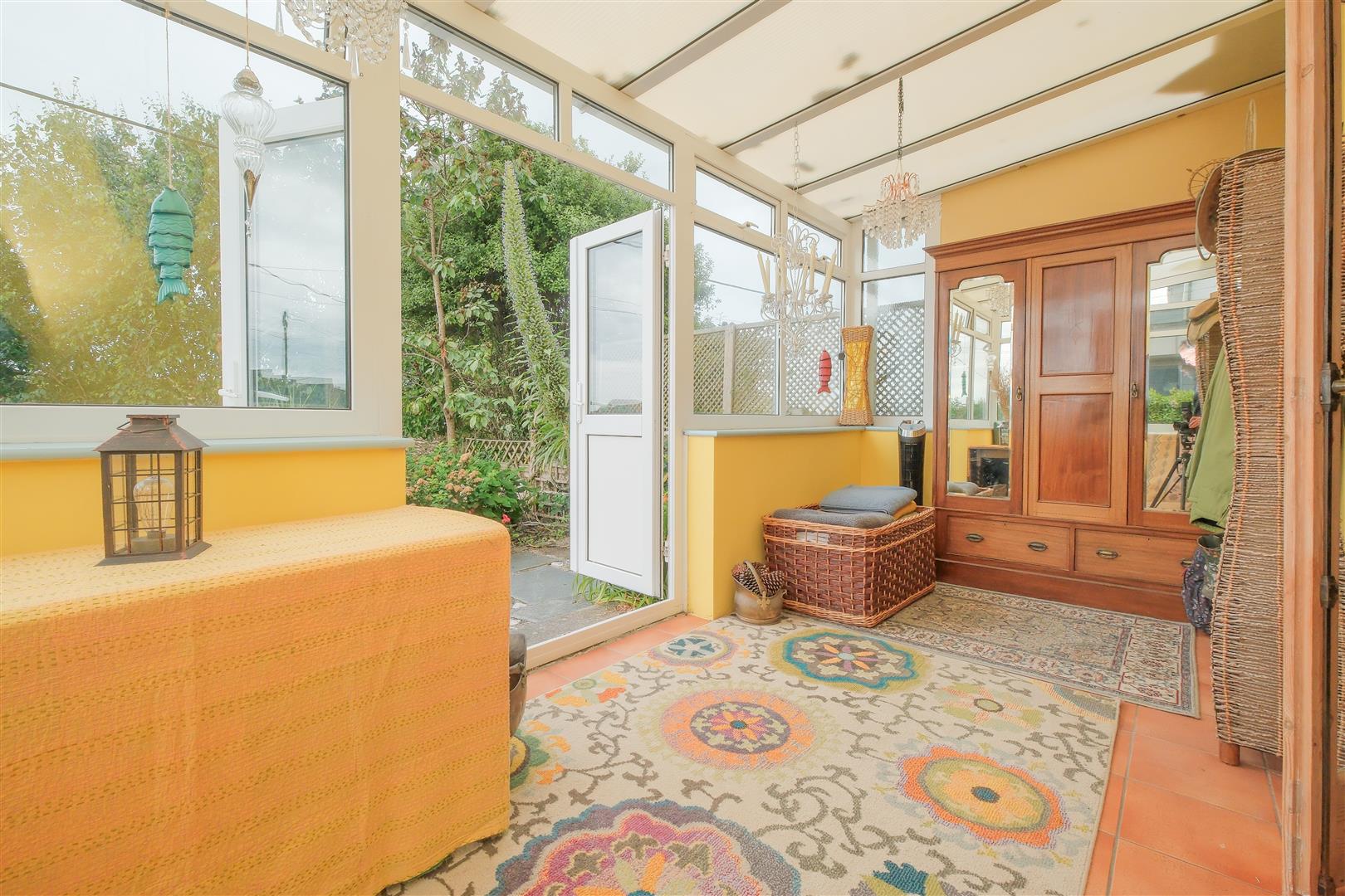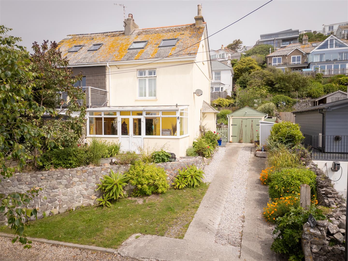 The low maintenance front garden has a paved and gravelled terrace, south facing with flower beds and sea views.