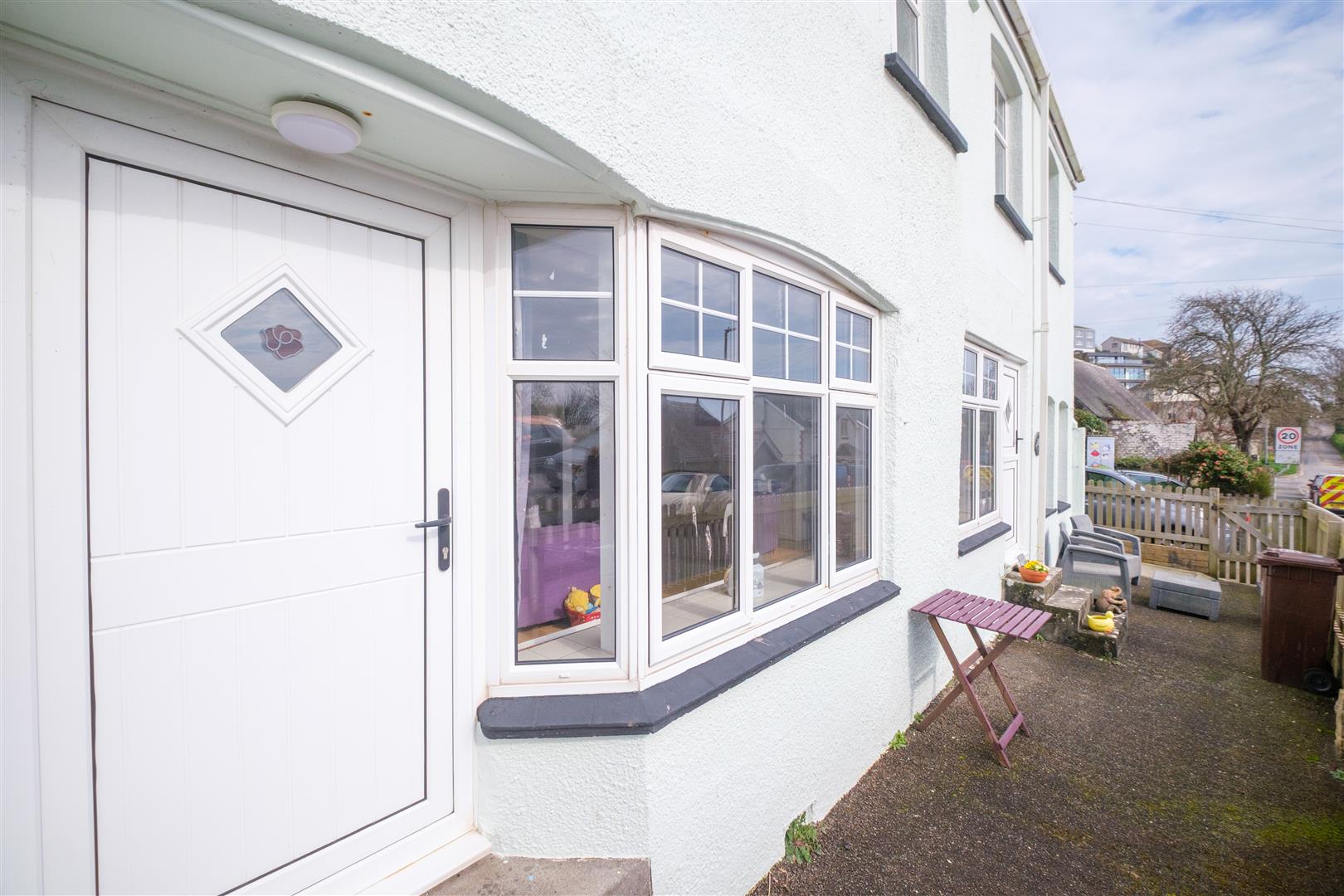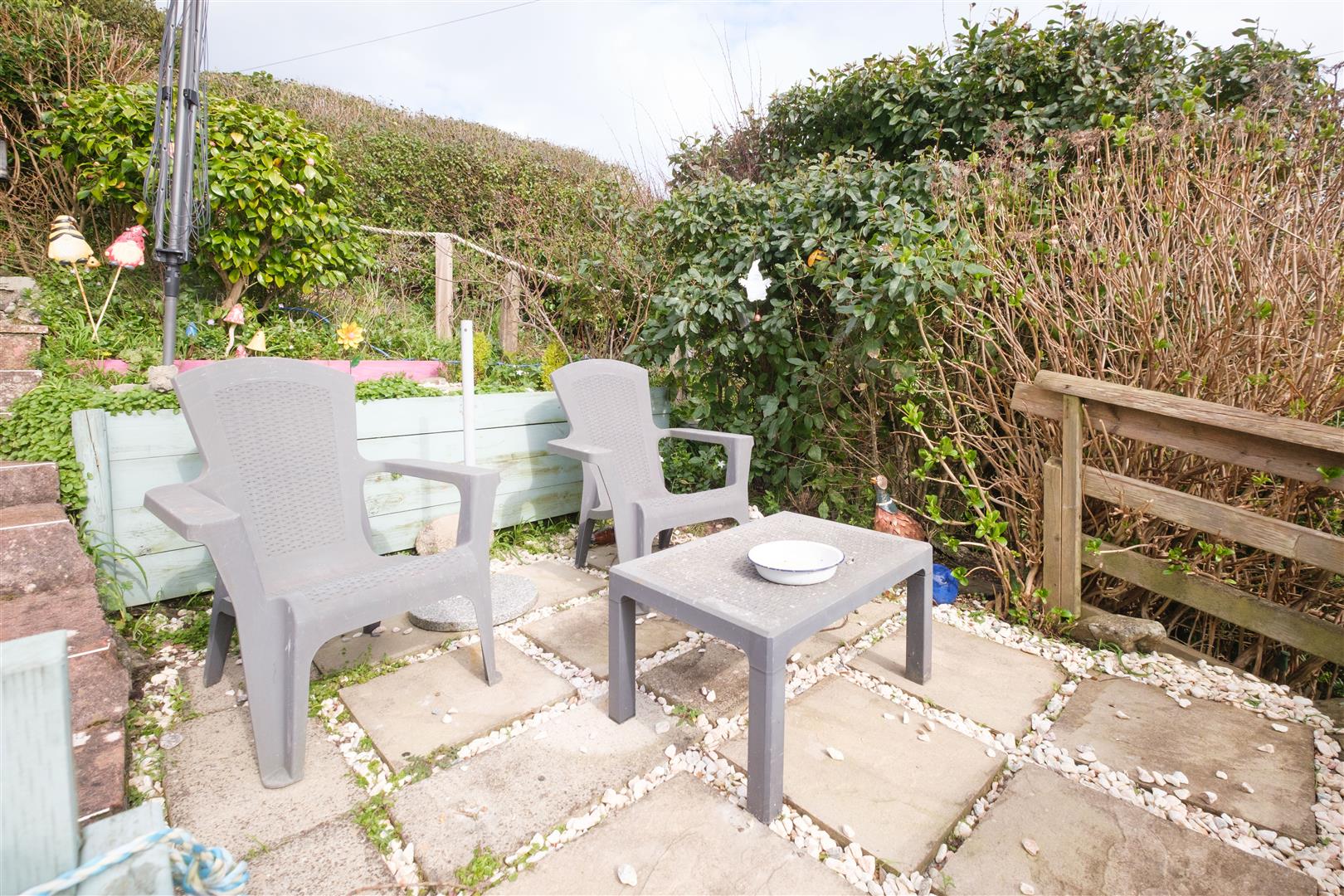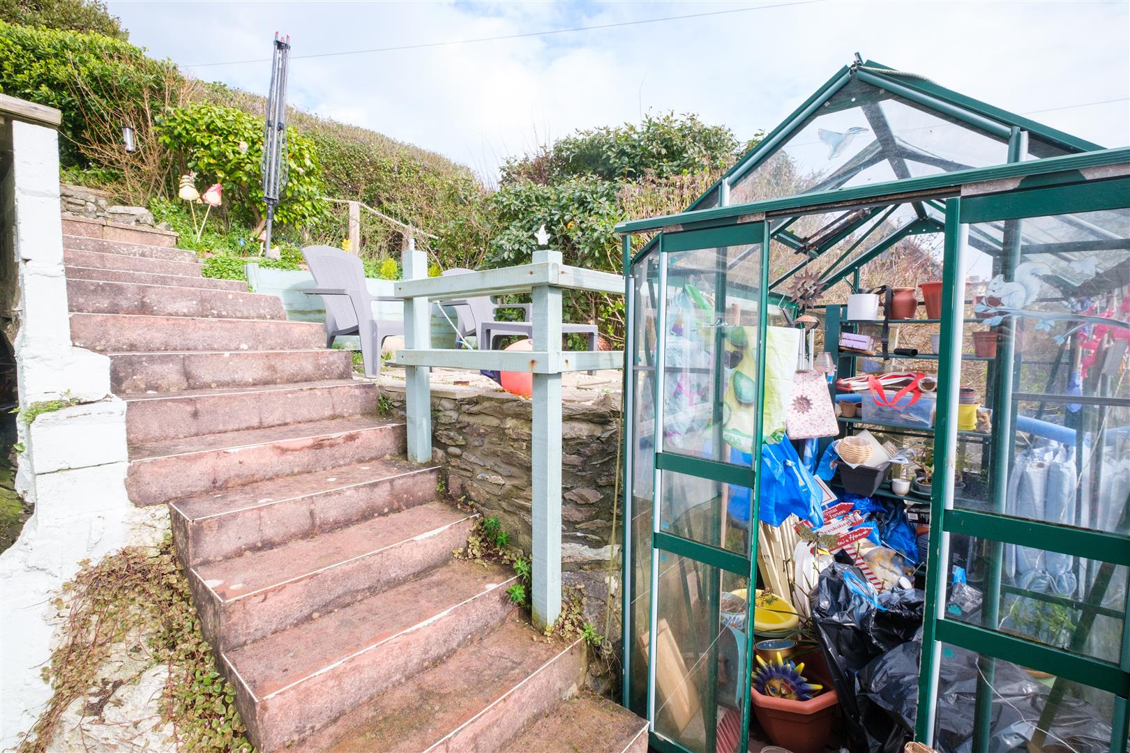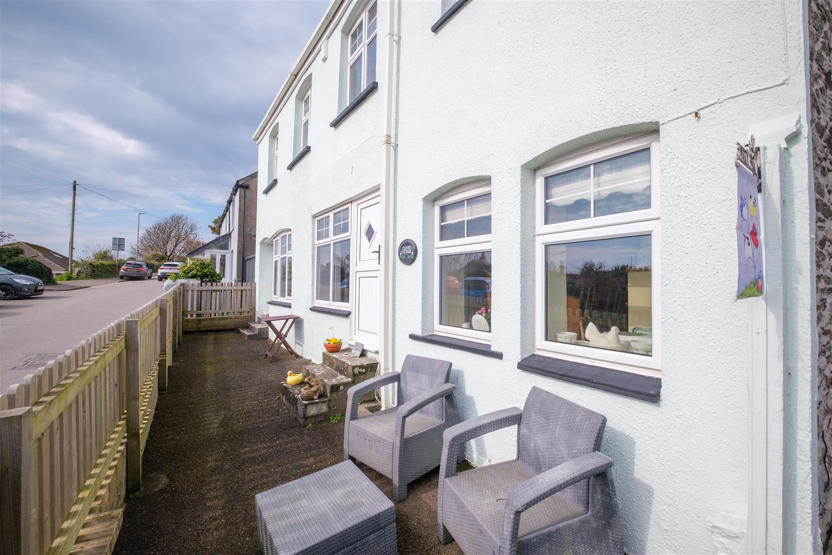 Private parking for two cars. The gardens are low maintenance with a courtyard to the front and steps rising up the rear with various seating areas with sea views. Established flower and shrub beds. Greenhouse. An outbuilding to the rear could be suited to use as a studio or work from home space.