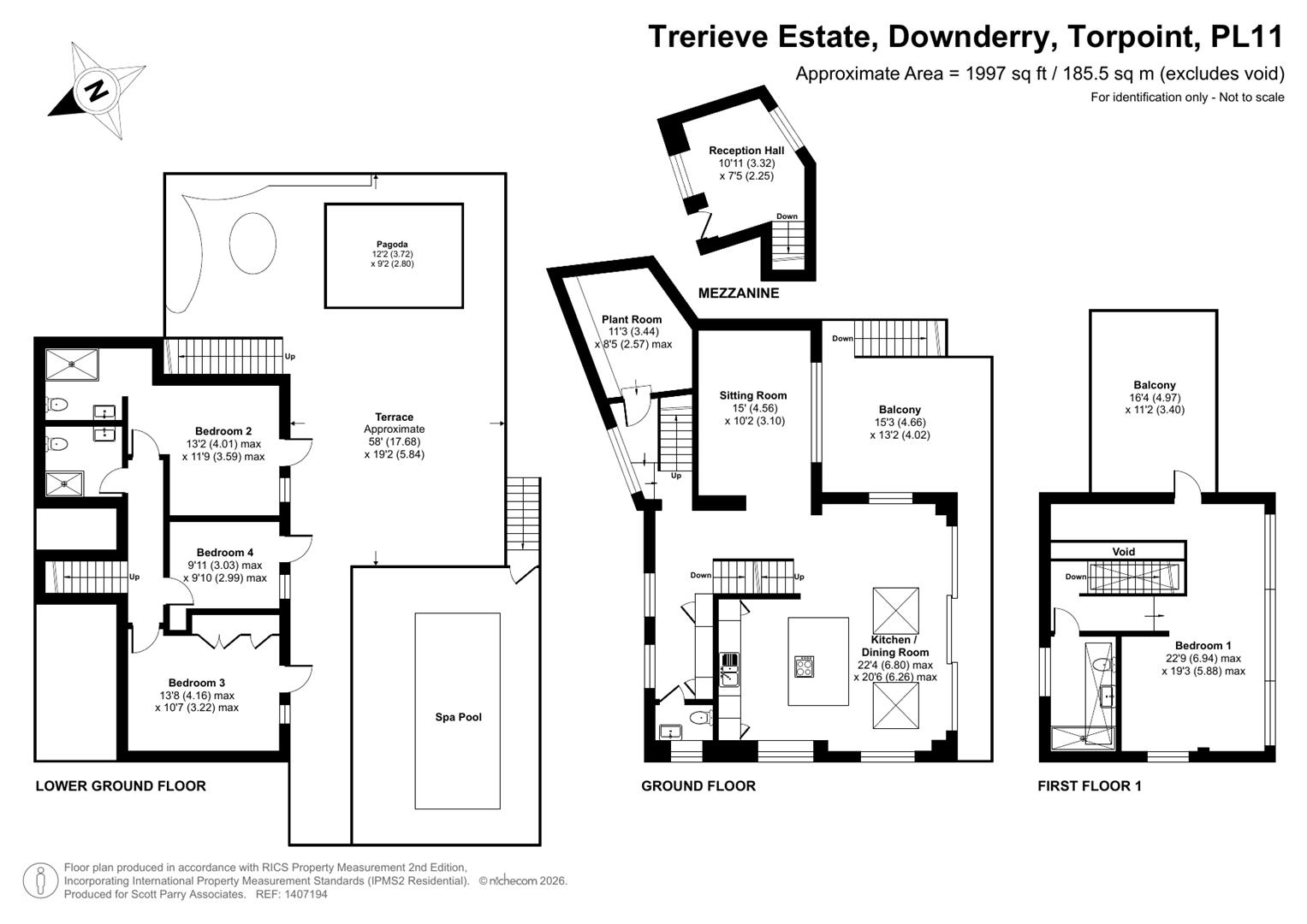 The accommodation extends to about 1997 sq ft and briefly comprises – ENTRANCE FLOOR – Reception Hall – 15′ Sitting Room – 22′ Open Plan Kitchen/Dining/Family Room with wide sliding doors to Canopied Balcony (285 sq ft) – Plant Room – Cloak/WC – FIRST FLOOR – 22′ Principal Bedroom with Dressing Area, Luxury Ensuite Shower/WC and Private Balcony (176 sq ft) – LOWER GROUND FLOOR – 3 Bedrooms (1 Ensuite) each having direct access to the Pool Terrace – Separate Shower/WC.