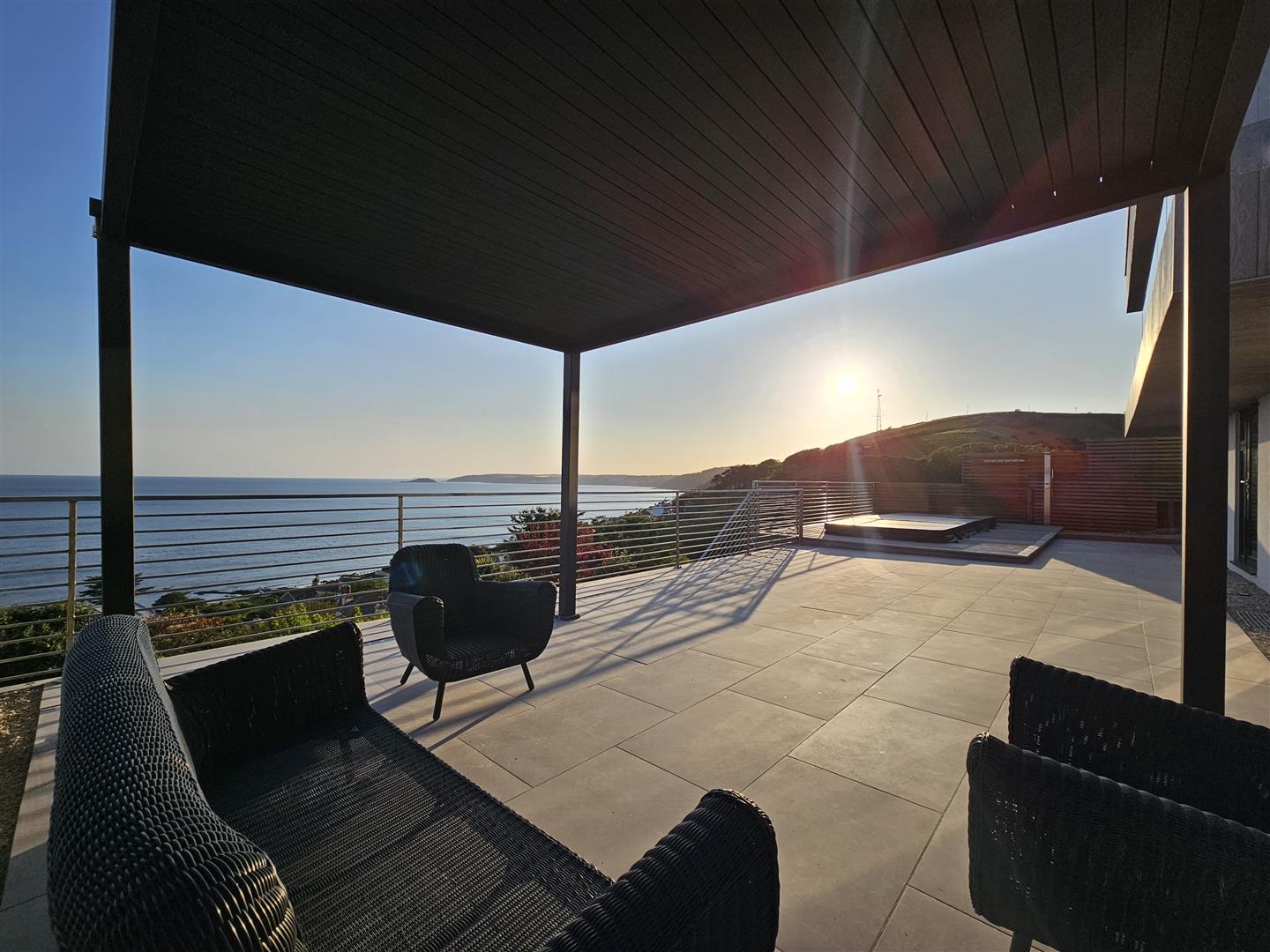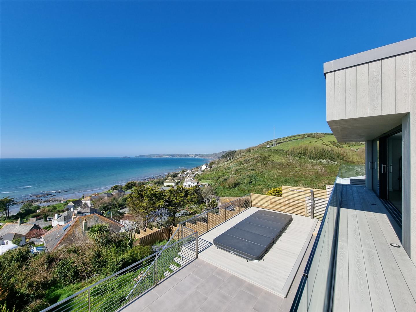 ICONIC AND LUXURIOUS BEACH HOUSE WITH STUNNING SEA VIEWS – An architecturally inspired detached seaside house, south facing and commanding an awe inspiring 180 degree panorama over the sparkling waters of Whitsand Bay. About 1997 sq ft, Sitting Room, Open Plan Living Room/Kitchen, Laundry and Cloakroom, 4 Bedrooms (2 Ensuite), Extensive Sea Facing Balconies and Terrace, Spa and Resistance Pool, Parking, Large Gardens, Eco Features including EV Point.
