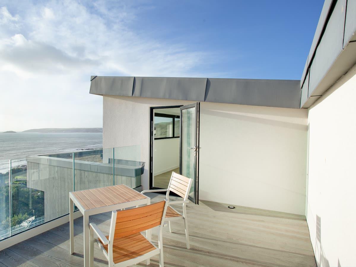 The gardens lie on the south side of the house and are dominated by the uninterrupted sea views. There are two balconies (195 sq ft and 176 sq ft respectively) allowing interaction with the outside space from the kitchen/living room and the principal bedroom.