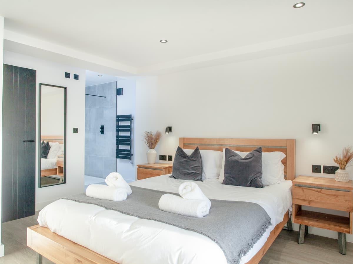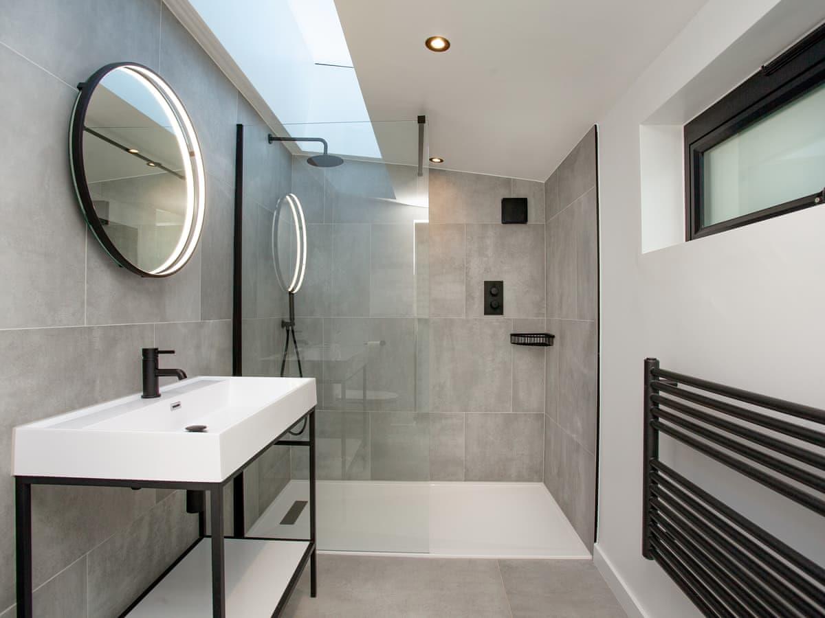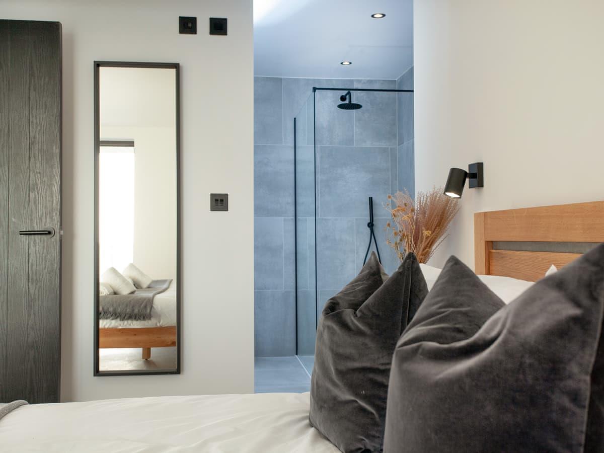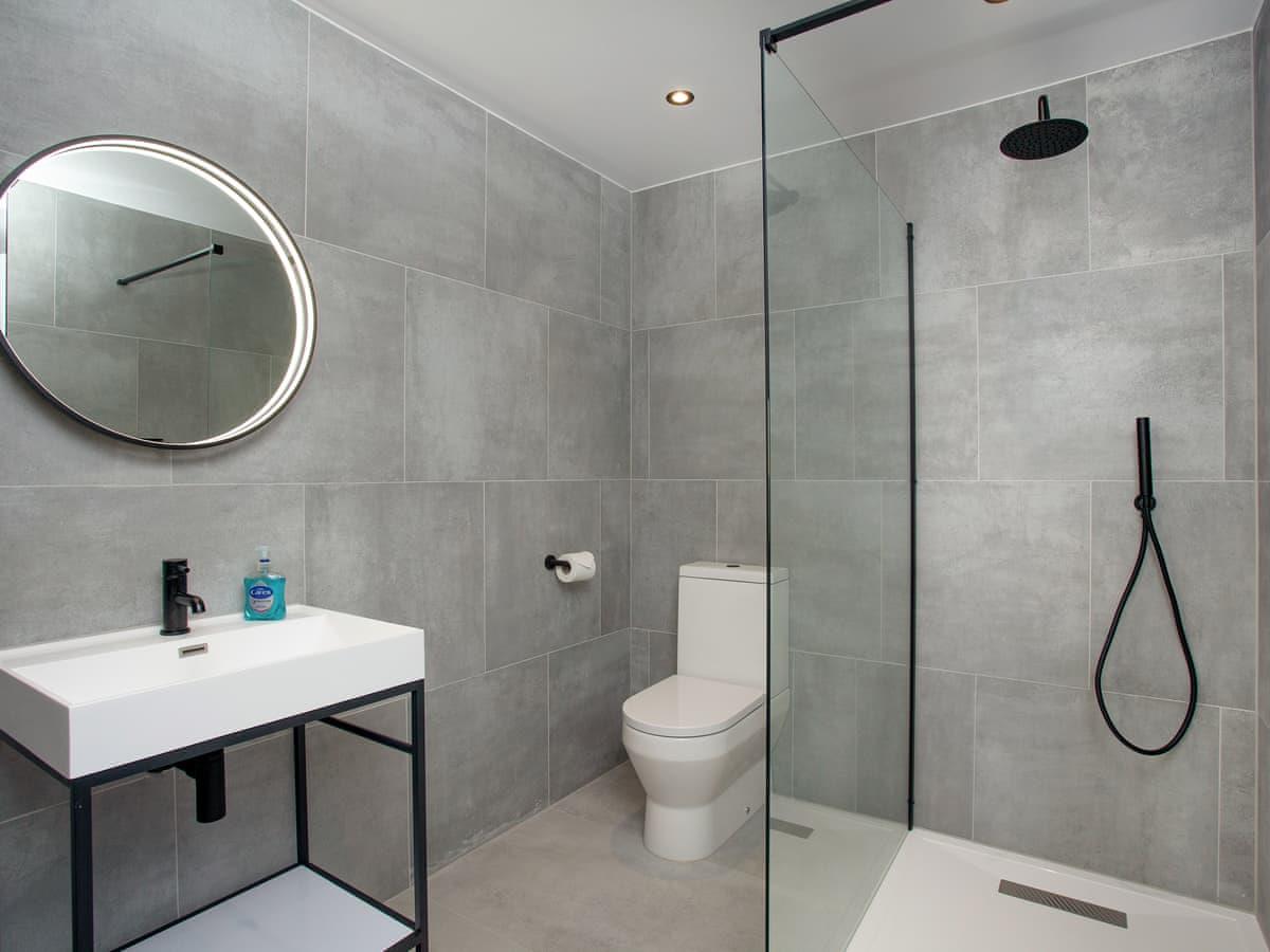 A large paved terrace (about 1600 sq ft) provides fantastic entertaining space with a superb swim spa with resistance feature and outside shower.