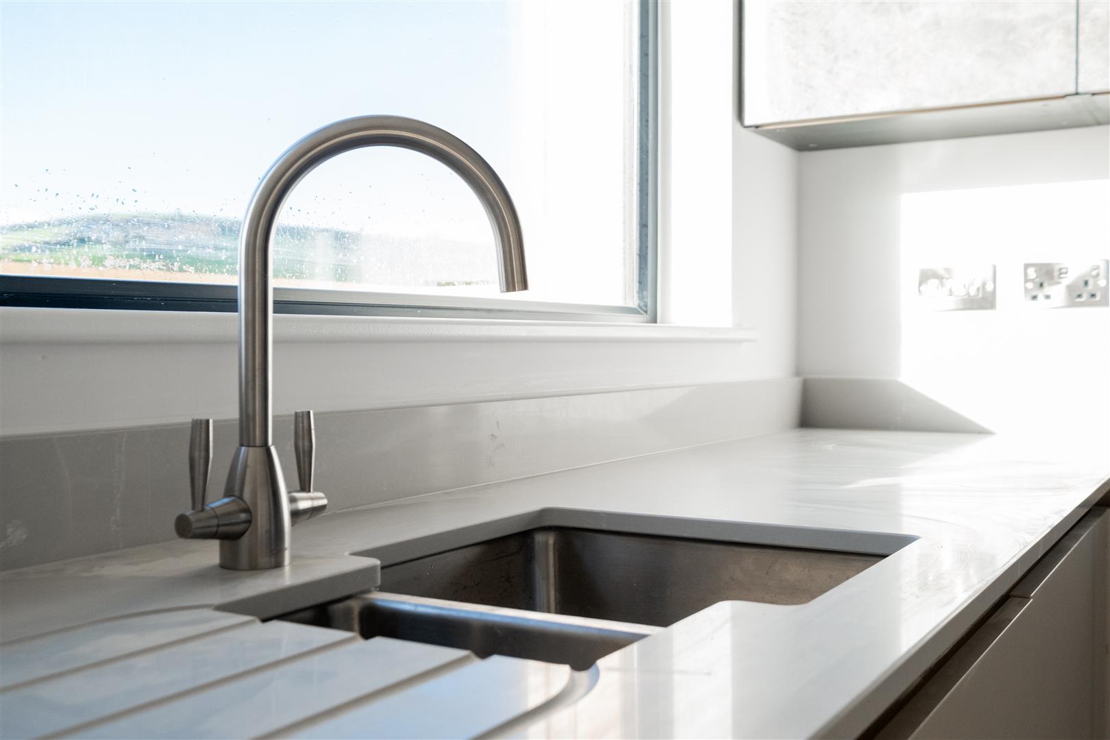 • 1.5 bowl stainless steel sink with modern chrome tap.