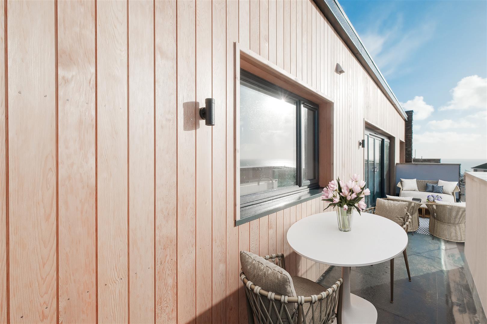 • Porcelain slabs to balcony and rear patio areas.