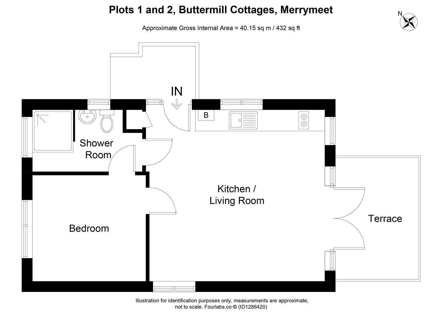 Plots 1 and 2 layout as follows – Open Plan Kitchen/Dining/Living Room with triple aspect and French doors to patio – Double Bedroom – Shower/WC.