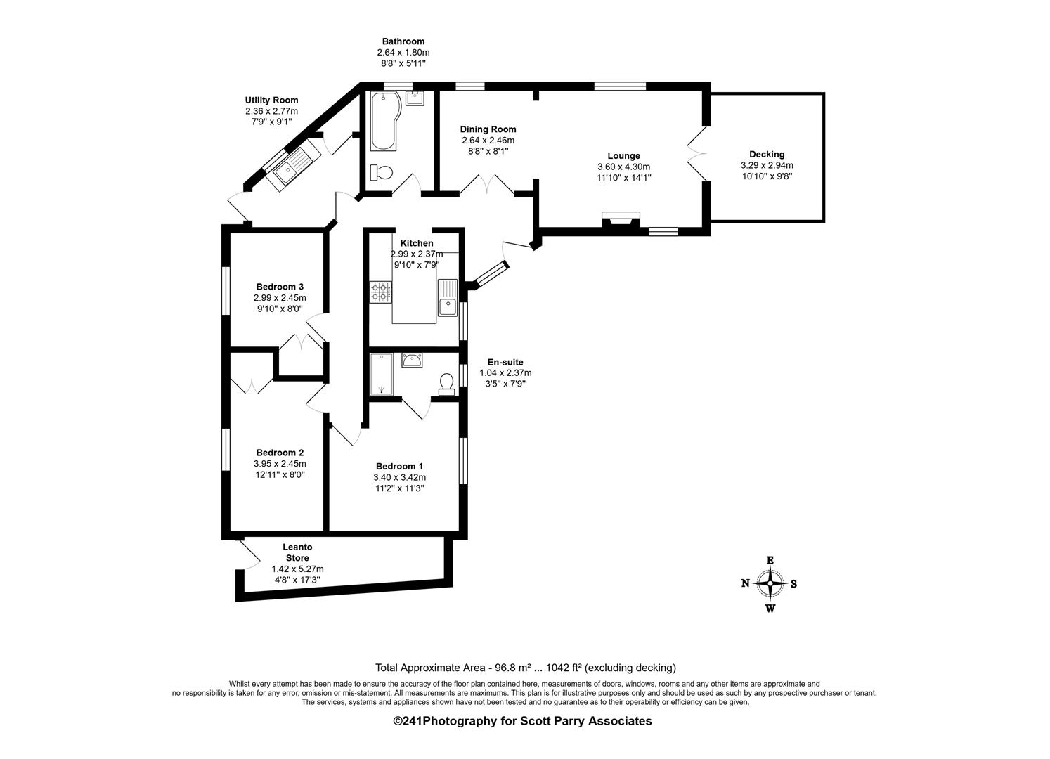 The accommodation extends to about 1042 sq ft and briefly comprises – Open Fronted Canopy Porch – Reception Hall – 23′ Triple Aspect Sitting/Dining Room with wood burner and French doors – 10′ Kitchen – Laundry Room – Bath/Shower Room – 3 Double Bedrooms (1 Ensuite).