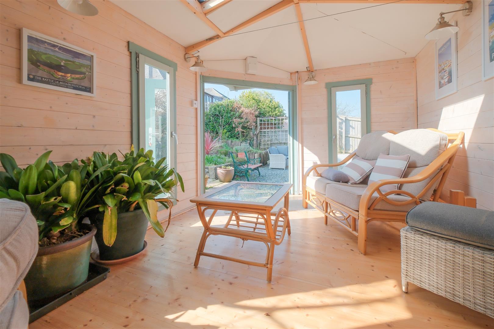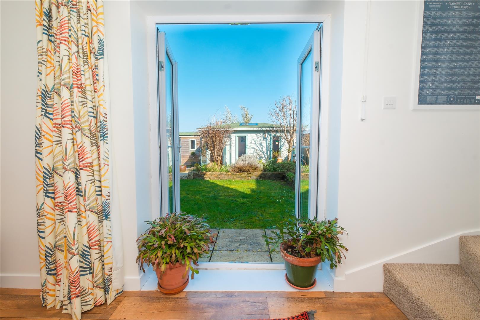 The enclosed rear garden has a fabulous aspect over the Tamar Valley, Tamar River and the foothills of Dartmoor beyond. The garden is low maintenance with level lawn and patio area with Summer House (by Gudrum) 4.38m x 2.75m and Garden Shed.