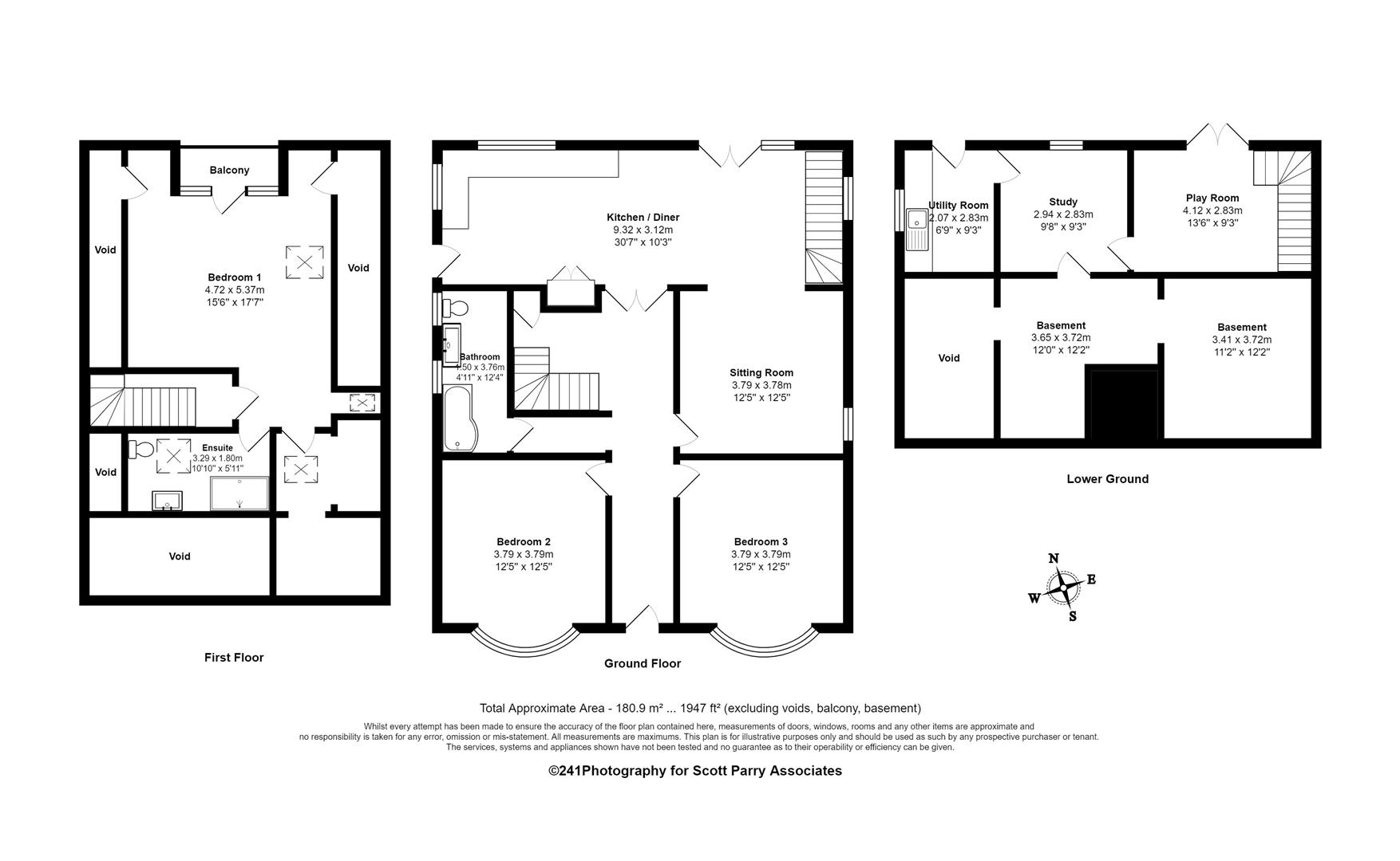 The accommodation extends to about 1947 sq ft and briefly comprises – GROUND FLOOR – Reception Hall – 30′ Kitchen/Dining Room with triple aspect and Juliet Balcony capitalising on the super views this room is open plan to the 12″ Sitting Room providing excellent entertaining and family space – 2 Double Bedrooms both with wide Bay windows and plantation shutters – Beautiful Modern Bath/Shower Room – FIRST FLOOR – 18′ Luxury Master Bedroom Suite with integral Canopied Balcony, Walk-in Wardrobe/Dressing Room and Ensuite Shower Room/WC – LOWER GROUND FLOOR – Garden Room/Bedroom 4 – Study – Cellar/Basement Store (280 sq ft) providing further potential – Laundry Room with WC.