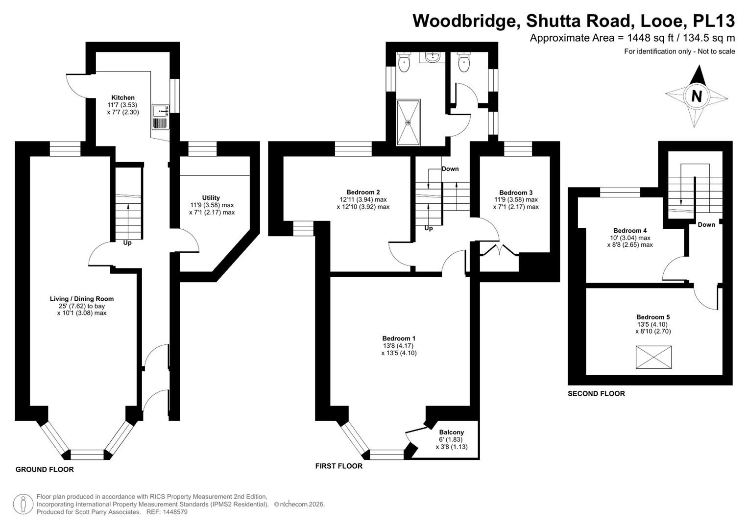The accommodation extends to about 1448 sq ft over three floors and briefly comprises – GROUND FLOOR – Lobby – Reception Hall – 25′ Sitting/Dining Room with wide bay window and fine views – Kitchen – Laundry Room – FIRST FLOOR – 14′ Principal Bedroom with bay window and Balcony off – 2 Further Bedrooms – Shower Room/WC – Sperate WC – SECOND FLOOR – 2 Bedrooms (Total 5 Bedrooms).