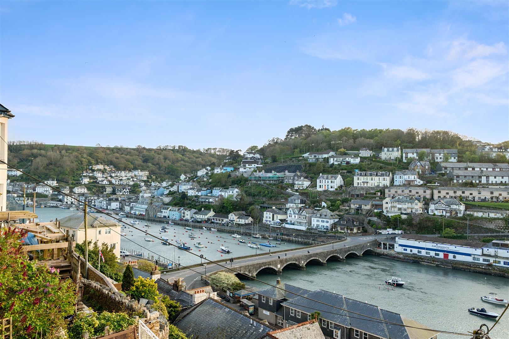 The property lies only 275 yards from the picturesque and historic harbour and the famous seven arch bridge, with the town beach and Hannafore beach also closeby. This elevated position allows a distracting panorama with tidal seafaring traffic including trawlers, day boats and leisure craft constantly in view.