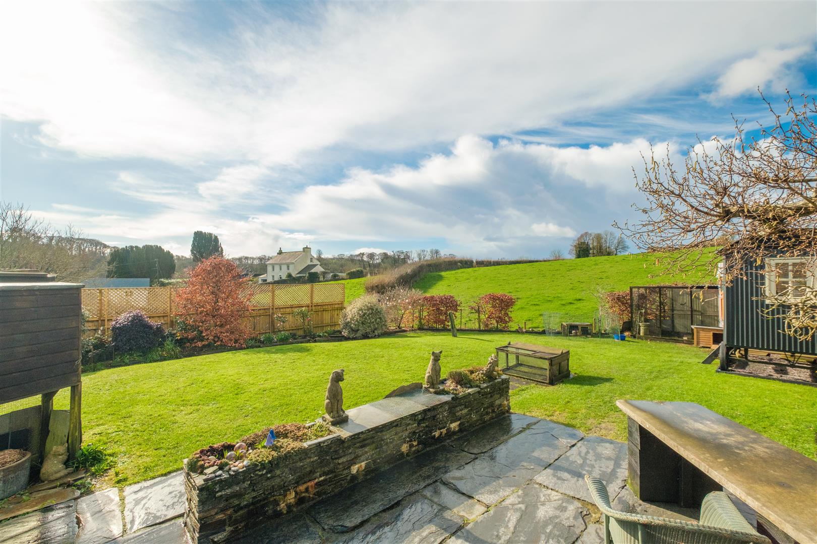 A private pedestrian path leads from the village road through a pretty lychgate style arrangement to the property. The well established gardens are a particular feature comprising lawn with a fine south and west aspect over open fields. There is a slate paved patio, wildlife pond and a Shepherds Hut with wood burner presenting opportunities for use as overflow guest accommodation or summerhouse/studio etc. There are various outbuildings as demonstrated by reference to the floorplan. The extent of the property is shown by reference to the Land Registry plan.