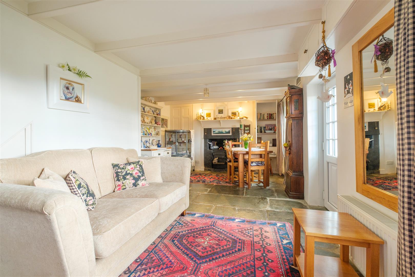 The accommodation extends to about 936 sq ft over two floors and briefly comprises – GROUND FLOOR – 14′ Dual Aspect Conservatory/Garden Room – 21′ Sitting/Dining Room a truly characterful room with exposed beams, old Cornish range feature and slate flag flooring – 13′ Kitchen/Breakfast Room with composite work surface and Neff 2 ring hob and oven, a dual aspect room with door to patio and garden – FIRST FLOOR – 2 Double Bedrooms (one with a dual aspect) – Family Bathroom.